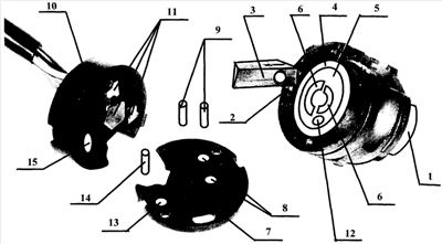 – контактную часть с основанием 10 и контактами 11.