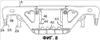 Обратимся теперь к рассмотрению фиг.18 и 19, на которых показан частично вид в перспективе тележки 10 железнодорожного вагона, содержащей надрессорный брус 12, конец 32 которого входит в отверстие 18 боковины 14. Рессорный комплект 36 поддерживает конец 32 надрессорного бруса. Боковой конец надрессорного бруса 14 образует буксовый вырез 24, который имеет зев буксового выреза. Зев буксового выреза образован внешней стенкой 24 буксового выреза, секцией свода 28 и внутренней стенкой 29 буксового выреза. Показан также переходник 80 подшипника, который представляет собой единую деталь, изготовленную из стали ил чугуна. Можно видеть, что переходник 80 подшипника содержит в целом прямоугольную верхнюю секцию 80, имеющую зависимые отходящие от нее вниз заплечики 84 и 86, расположенные с промежутком друг от друга. В переходнике 80 подшипника предусмотрено аркообразное отверстие 89, в которое плотно вставлен конец оси 20.