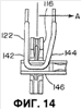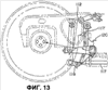 На фиг.13 показан частично вид спереди узла тормозной балки, установленного в тележке железнодорожного вагона по первому варианту.