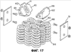 На фиг.17 показано перспективное изображение с пространственным разделением деталей рессорного комплекта с фрикционными башмаками и с компенсирующими износ пластинами в соответствии с первым вариантом настоящего изобретения.
