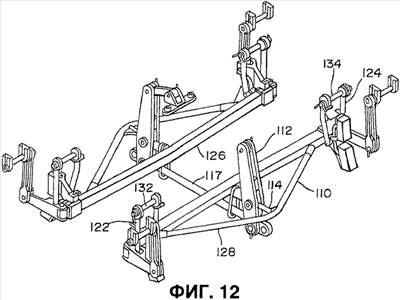 Рычаг 112 управления, который обычно содержит два смещенных друг от друга компонента, изготовленные из конструкционной стали, идет вниз и прикреплен к отклоняющей секции 114 и к рычагу 117 управления.
