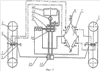При прямолинейном движении автомобиля и правильном схождении управляемых колес боковые реакции дороги на эти колеса отсутствуют, а сопротивления тензодатчиков равны между собой, поэтому напряжение, подаваемое с точек С и Д электрического моста 7 на электромагнитную катушку 9, равно нулю и золотник 10 распределительного устройства 11 находится в центральном (нейтральном) положении.