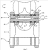 В варианте выполнения, показанном на фиг.2, вращающаяся втулка 42 может быть расположена на двух подшипниках 40 скольжения. Элементы 36а и 36b вкладышей также могут быть расположены на двух отдельных подшипниках 40 скольжения. Предусматривается, что каждый из подшипников 40 скольжения может быть сформирован из относительно твердого металлического материала, такого как азотированная сталь, и может включать в себя криволинейный, расположенный вдоль окружности венец 41 вокруг средней точки его внешнего диаметра. Однако предусматриваются варианты выполнения, в которых муфты 40 включают в себя чередующиеся структуры венцов или выполнены без венцов. Множество уплотнителей 43 могут быть также предусмотрены и расположены между каждой из муфт 44а и 44b и элементами 36а и 36b вкладышей, а также между элементами 36а и 36b вкладышей и втулкой 42. Уплотнители 43 могут представлять собой кольцевые эластомерные уплотнители, аналогичные уплотнителям такого типа, как, например, описано в патенте Соединенных Штатов 6382742 автора Hasselbusch и др.