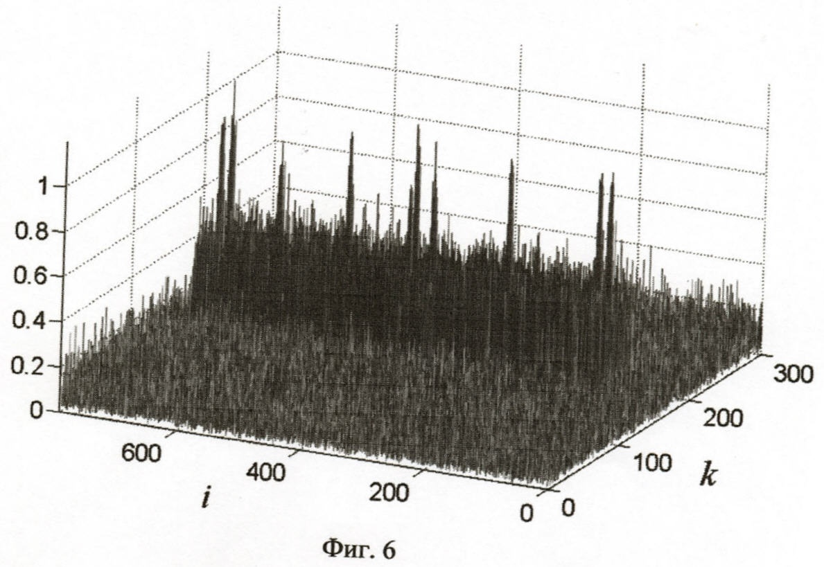 Способ дистанционной регистрации по радиолокационным наблюдениям выхода гребного винта на максимальные обороты при экстренном разгоне морского судна, заключающийся в том, что формируют матрицу, содержащую эхо-сигналы от корпуса морского судна, его локальных источников и поверхностного волнения моря, столбцы которой являются радиолокационными линейками наблюдения для каждого из угловых положений антенны, представляющих собой последовательность дискретных отсчетов эхо-сигналов, для каждой i-й линейки, где i=1, 2, , q – номер линейки, получают биполярную матрицу вейвлет-спектров эхо-сигналов путем непрерывного вейвлет-преобразования столбцов матрицы эхо-сигналов; исключают элементы одноименной полярности, не содержащие вейвлет-спектров эхо-сигналов от корпуса судна, устанавливают значение порога биномизации, при котором размеры связных множеств биномизированных элементов вейвлет-спектров эхо-сигналов от поверхностного волнения меньше размеров двумерной матрицы морфологического фильтра, выполняют биномизацию матрицы вейвлет-спектров эхо-сигналов с помощью установленного порога биномизации, обеспечивающего исключение элементов вейвлет-спектров эхо-сигналов от взволнованной поверхности моря, с помощью указанного морфологического фильтра путем морфологической обработки сформированной биномизированной матрицы вейвлет-спектров получают вейвлет-спектры эхо-сигналов в виде однополярных импульсов, положение которых на каждой радиолокационной линейке наблюдения соответствует положению эхо-сигналов от отражающего элемента корпуса судна и которые образуют внешний контур корпуса морского судна, с помощью пирамидальных алгоритмов быстрого вейвлет-преобразования получают вейвлет-коэффициенты путем декомпозиции линеек матрицы эхо-сигналов поверхностного волнения вне контура судна, определяют значения порогов ограничения указанных вейвлет-коэффициентов, при которых сумма ограниченных вейвлет-коэффициентов от эхо-сигналов поверхностного волнения вне контура судна равна нулю, с помощью пирамидальных алгоритмов быстрого вейвлет-преобразования получают вейвлет-коэффициенты путем декомпозиции линеек матрицы эхо-сигналов внутри контура судна, ограничение которых выполняют с помощью упомянутых порогов, формируют биполярную матрицу вейвлет-спектров эхо-сигналов путем непрерывного вейвлет-преобразования каждой линейки, образованной суммированием указанных вейвлет-коэффициентов каждой линейки, и исключают из нее элементы одноименной полярности, не содержащие вейвлет-спектры эхо-сигналов от локальных источников, при этом указанные вейвлет-спектры эхо-сигналов от локальных источников в виде однополярных импульсов, положение которых на каждой радиолокационной линейке наблюдения соответствует положению эхо-сигналов от локальных источников, образуют контуры локальных источников, одновременно с формированием вышеупомянутой биполярной матрицы устанавливают число уровней декомпозиции быстрого вейвлет-преобразования, масштаб функции непрерывного вейвлет-преобразования и число суммируемых вейвлет-коэффициентов каждой линейки на последнем уровне декомпозиции, при которых отношение амплитуды элементов вейвлет-спектров от вейвлет-коэффициентов локальных источников к амплитуде элементов вейв