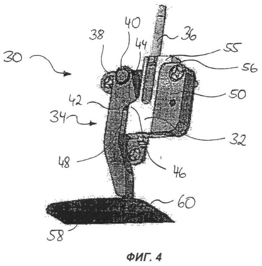 Как лучше всего видно на Фиг.3-5, устройство аварийного открытия 30 содержит соединительный элемент 32 и запорное устройство 34. Соединительный элемент 32 содержит устройство кабельного соединения 36, которое используется для крепления соединительного элемента 32 к направляемому кабелю 24 системы удержания 20. Устройство кабельного соединения 36 снабжено регулирующим устройством, которое позволяет регулировать длину кабеля 24 системы удержания во время сборки системы удержания 20 и устройства аварийного открытия 30.