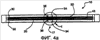 Далее, опора 6 содержит углубление 34 в средней части 17 каждой из базовых поверхностей 30 для размещения выполненного внахлест продольного запечатывающего шва вместе с поперечным запечатыванием. Дополнительно опора 16 содержит вспомогательные запечатывающие поверхности 36, также расположенные в средней части 17 опоры. Основные запечатывающие поверхности 20 приподняты над вспомогательными запечатывающими поверхностями 36, а вспомогательные запечатывающие поверхности в свою очередь приподняты над базовыми поверхностями 30. Когда труба 12 сплющена и сдавлена между основными запечатывающими поверхностями 20, 22 для получения поперечных запечатывающих швов вдоль основных линий 24 запечатывания, вспомогательные запечатывающие поверхности 36 опоры располагаются так, чтобы взаимодействовать с соответствующими вспомогательными запечатывающими поверхностями 38 (показано на фиг. 5) ультразвукового излучателя 18, чтобы получить запечатывающие швы вдоль вспомогательных линий 40 запечатывания. Символически такие вспомогательные линии 40 запечатывания показаны на фиг. 2. Опора 16 далее имеет приемные полости 42 в виде выемок в средней части 17 опоры, между соответствующей парой средств 32 проникновения и вспомогательной запечатывающей поверхности 36. Действие этих приемных полостей будет описано в дальнейшем. Наконец, опора 16 содержит канавку 43, проходящую вдоль и между основными запечатывающими поверхностями 20. Нож 44 (показан на фиг. 5) выполнен таким образом, что он входит в данную канавку и соответствующую канавку 46 в ультразвуковом излучателе, чтобы отделить запечатанные части трубы, как упомянуто в начале документа.