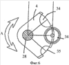 Кроме того, как показано на фиг.6, на держателе 4 емкости в форме кругового сектора, со стороны запорного элемента 34, предусмотрен соответствующий паз 35 или 36, и, в частности, разного размера, так чтобы можно было устанавливать держатель 4 емкости при повороте штанги 28 на бутылки 2 с разным диаметром на участке фланца 2.2 горловины.