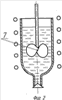 Предлагаемый способ для варки агрессивного оптического стекла, выделяющего в процессе стеклообразования агрессивные продукты реакции, осуществляют следующим образом. В платиновый тигель 1, размещенный в жаровом пространстве печи 2, загружают небольшое количество боя стекла той же марки, которая будет навариваться. Донный патрубок 3 при этом закрыт пробкой 4. Печь включают на разогрев. После расплавления боя стекла в платиновый тигель 1 опускают огнеупорный, в частности из плавленого кварца, горшок 5 с небольшим отверстием 6 в донной части. Допускается в платиновый тигель помещать огнеупорный горшок с боями на дне. После того как расплавленная стекломасса заполнит через отверстие 6 донную часть платинового тигля 1 и кварцевого горшка 5, начинают сыпки шихты в кварцевый горшок в соответствии с технологическим режимом варки конкретной марки стекла. При этом расплавленная стекломасса по закону сообщающихся сосудов перетекает через донное отверстие 6 в платиновый тигель 1. После достижения заданного уровня стекломассы сыпки прекращают и после полного расплавления шихты горшок 5 медленно извлекают из тигля 1 с помощью специального приспособления с полным перетеканием стекломассы из горшка в тигель. Далее производят осветление, в стекломассу вводят мешалку 7 и проводят перемешивание и отлив стекла в форму через донный патрубок 3 при удаленной пробке 4.