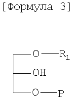 Соединения с Формулами 3 и 4 являются рацемическими или оптически активными; здесь R1 и R2 – остатки жирных кислот, содержащих 16-22 атомов углерода и отличающихся друг от друга. Предпочтительно R1 – это остаток пальмитиновой кислоты, R2 – линолевой кислоты, Р – тритил или триалкилсилил в качестве защитной группы, где алкил в триалкилсилиле включает 1-5 атомов углерода. Ниже для лучшего понимания данного изобретения приводятся предпочтительные примеры, однако они его не ограничивают. Пример 1. Получение 1-пальмитоил-3-тритилглицерола В реакционный сосуд объемом 1 л помещали 33,0 г 1-пальмитоил-глицерола, 48 мл пиридина и 31,3 г тритилхлорида. Реакционную смесь нагревали до 60°С при перемешивании, и реакция протекала в течение 3 часов. По завершении реакции в реакционную смесь медленно добавляли охлажденную воду (240 мл). После этого реакционную смесь перемешивали еще 1 час, затем фильтровали. Полученный плотный материал промывали охлажденной водой (120 мл) и высушивали при 40°С. В результате получалось 57,3 г 1-пальмитоил-3-тритил-глицерола (выход: 100%). {1Н ЯМР (400 МГц, СDСl3): 0,89-0,93 (t,3H), 1,21-1,31 (m, 24H), 1,57-1,61 (m, 2H), 2,31 (t, 2H), 3,25 (d, 2H), 3,97-4,02 (m, 1H), 4,16-4,27 (m, 2H), 7,22-7,47 (m, 15H)} Пример 2. Получение 1-пальмитоил-3-трет-бутилдиметилсилил-глицерола В реакционный сосуд объемом 1 л помещали 33,0 г 1-пальмитоил-глицерола, 330 мл дихлорметана и 13,6 г имидазола. Реакционную смесь охлаждали до 0°С. Затем добавляли 18,0 г трет-бутилдиметилсилилхлорида, и смесь перемешивали еще 2 часа. После фильтрования реакционной смеси растворитель отгоняли при пониженном давлении и для экстракции добавляли 165 мл очищенной воды и 150 мл гептана. Отделившийся слой органических соединений снова экстрагировали очищенной водой (80 мл), после чего органический слой обезвоживали безводным сульфатом магния и отфильтровывали. После этого растворитель отгоняли под пониженным давлением. В результате получался 1-пальмитоил-3-трет-бутилдиметилсилил-глицерол (выход: 100%). {1Н ЯМР (400 МГц, СDСl3):0,78-0,83 (m, 18Н), 1,18-1,31 (m, 24Н), 1,50-1,56 (m, 2Н), 2,24 (t, 2H), 3,51-3,60 (m, 2Н), 3,76-3,79 (р, 1Н), 4,04-4,10 (m, 2Н)}. Пример 3. Получение 1-пальмитоил-2-линолеил-3-тритил-глицерола В реакционный сосуд объемом 1 л помещали 57,3 г 1-пальмитоил-3-тритил-глицерола, полученного в Примере 1, 300 мл гептана, 29,4 г линолевой кислоты и 0,122 г диметиламинопиридина. В реакционную смесь добавляли 21,7 г дициклогексилкарбодиимида и перемешивали в течение 3 часов при комнатной температуре. Отфильтровав дициклогексилмочевину, получали гептановый раствор 1-пальмитоил-2-линолеил-3-тритил-глицерола (ожидаемый выход: 100%). {1Н ЯМР (400 МГц, СDСl3):0,92-0,95(m,6Н), 1,33-1,43(m,36Н),1,60(m,2Н), 1,69(m,2Н), 2,09-2,11(m,4Н), 2,26(t,2H), 2,27(t,2H), 2,83(t,2H), 3,31(m,2H), 4,24-4.42(m,4H), 5,31-5,41(m,5Н), 7,21-7,49(m,15Н)}. Пример 4. Получение 1-пальмитоил-2-линолеил-3-трет-бутилдиметилсилил-глицерола В реакционный сосуд объемом 1 л помещали 44,4 г 1-пальмитоил-3-трет-бутилдиметилсилил-глицерола, полученного в Примере 2, 225 мл гептана, 29,4 г линолевой кислоты и 0,122 г диметиламинопиридина. В реакционную смесь добавляли 21,7 г дициклогексилкарбодиимида и перемешивали в течение 3 часов при комнатной температуре. Отфильтровав дициклогексилмочевину, получали гептановый раствор 1-пальмитоил-2-линолеил-3-трет-бутилдиметилсилил-глицерола (ожидаемый выход: 100%). {1Н ЯМР (400 МГц, CDCl3): 0,76-0,81(m,21H), 1,16-1,27(m,36H), 1,50-1,52(m,4H), 1,95(q,4H), 2,17-2,21(m,4H), 2,65(t,2H), 3,62(d,2H), 4,02-4,28(m,4H), 4,96-5,27(m,5H)}. Пример 5. Получение 1-пальмитоил-2-линолеил-3-ацетил-глицерол