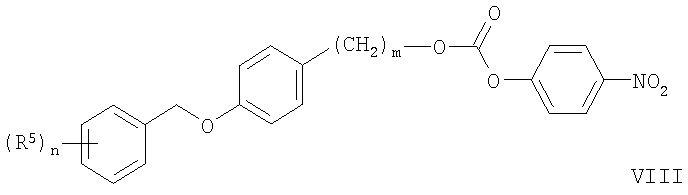 Карбонаты формулы VIII образуются в ходе реакции гидроксильных производных формулы VI с фенил хлорформиатами, предпочтительно замещенными фенил хлорформиатами, например 4-нитрофенил хлорформиатами. Соединения формулы Ib получают при взаимодействии этих карбонатов с аминами общей формулы V предпочтительно в герметично закрытых пробирках и в растворителях, инертных при данных реакционных условиях, например тетрагидрофуране или диоксане при температуре от 0 до 60°С.