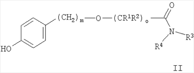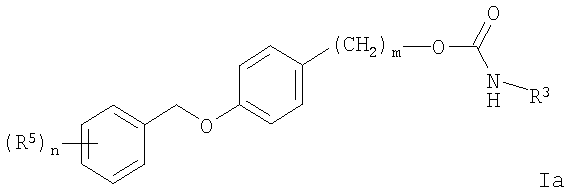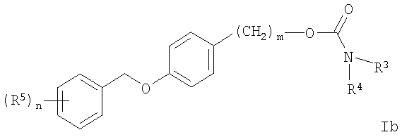 Другой предпочтительной группой соединений формулы I являются те, где о представляет собой 0, а m представляет собой 2, например 2-[4-(3-фтор-бензилокси)-фенил]-этиловый эфир карбаминовой кислоты.