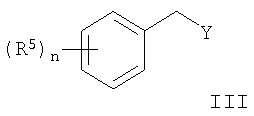 Соединения общей формулы I можно получить синтезом эфиров по Вильямсону, начиная с соответствующих паразамещенных фенолов формулы II по реакции с бензильными галогенидами, тозилатами, мезилатами или трифлатами формулы III. В качестве оснований, например, можно использовать алкоголяты или карбонаты (карбонат натрия, калия или цезия). Предпочтительными растворителями являются низшие спирты, ацетонитрил или низшие кетоны при температуре от 20°С до температуры дефлегмации. Другой способ представляет собой взаимодействие бензиловых спиртов формулы III с соответствующими фенолами формулы II по реакции сочетания Мицунобу. Обычно реакцию проводят в инертных растворителях, например в диэтиловом эфире или тетрагидрофуране, используя диалкилазодикарбоксилаты, в присутствии фосфинов (например, трибутил- или трифенилфосфина). В случае, когда R7 представляет собой NR3R4, в ходе вышеупомянутых реакций алкилирования непосредственно получают требуемые соединения формулы I.
