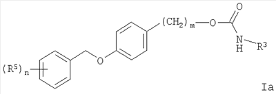 Также предпочтительными являются соединения формулы I, где о представляет собой 0 и m представляет собой 1, например 4-(3-фтор-бензилокси)-бензиловый эфир метилкарбаминовой кислоты.