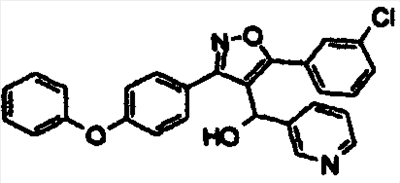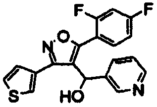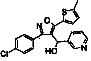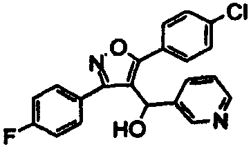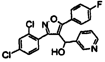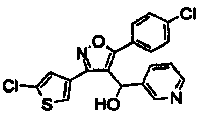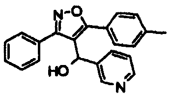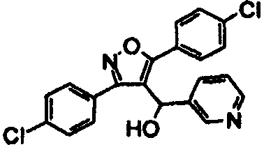 14. Соединение по п.1, выбранное из группы, состоящей из: 3-(2,6-дихлорфенил)-4-[(3-пиридил)гидроксиметил]-5-триметилсилилизоксазола (соединение 1); 5-(3-хлорфенил)-3-(2,4-дихлорфенил)-4-[(3-пиридил)гидроксиметил]изоксазола (соединение 4); 3-(2,4-дихлорфенил)-5-(1,1-диметиэтил)-4-[(3-пиридил)гидроксиметил]изоксазола (соединение 7); 3-(2,4-дихлорфенил)-4-[(3-пиридил)гидроксиметил]-5-(2-тиенил)изоксазола(соединение 12); 3-(2,4-дихлорфенил)-4-[(3-пиридил)гидроксиметил]-5-(3-тиенил)изоксазола (соединение 13); 3-(4-хлорфенил)-5-(3,5-дифторфенил)-4-[(3-пиридил)гидроксиметил]изоксазола (соединение 105); 3-(4-хлорфенил)-5-(3-хлорфенил)-4-[(5-пиримидинил)гидроксиметил]изоксазола (соединение 107); 5-(3-хлорфенил)-3-(5-хлор-2-тиенил)-4-[(5-пиримидинил)гидроксиметил]изоксазола (соединение 108); и его соли.