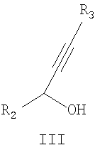 где R1 принимает значения, приведенные выше, с ацетиленовым карбинолом формулы III:
