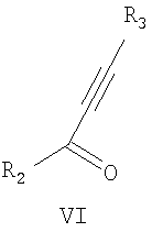 где R1 принимает значения, приведенные выше, с ацетиленовым кетоном формулы VI: