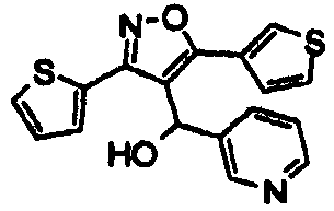 Смесь 52 мг (0,23 ммоль) 2,4-дихлор-N-гидроксибензолкарбоксимидоилхлорида, 50 мг (0,21 ммоль) 3-(2-хлорфенил)-1-(3-пиридил)-2-пропин-1-ола и 30 мг (0,36 ммоль) бикарбоната натрия в 3 мл изопропилового спирта нагревали при 55°С в течение ночи при встряхивании. Реакционную смесь охлаждали, разбавляли простым эфиром и затем промывали насыщенным бикарбонатом натрия. Эфирную фракцию сушили над сульфатом магния. Осушитель отфильтровывали и эфир удаляли на роторном испарителе. Неочищенный продукт очищали препаративной ТСХ, получая 15 мг (0,035 ммоль) 5-(2-хлорфенил)-3-(2,4-дихлорфенил)-4-[(3-пиридил)гидроксиметил]изоксазола. 1Н ЯМР (СDCl3): 5,80 (уш.с, 1). МС m/z: 431,0 (M+H).