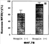В данных условиях культивирования клетки ES, высеянные на клетки ST2, образуют колонии, размер которых позволяет видеть их при макроскопическом наблюдении через несколько дней после помещения в чашки, клетки (колонии) положительные по отношению к миокардиальному клеточному маркеру, саркомерному миозину (здесь: MF20-положительные) обнаруживают после 8 дней культивирования, тогда как способные к пульсации кардиомиоциты появляются приблизительно на 12 день культивирования. Клетки ES, которые культивировали в присутствии белка Noggin (150 нг/мл) в течение 3 дней перед помещением в чашки, высевают на клетки ST2 и культивируют вместе с ними в среде, содержащей Noggin (150 нг/мл) в течение 2 дней. Результаты приведены на фиг.7. В то время как более 60% колоний, образовавшихся из клеток ES на фидере, являются MF20-положительными в группе Noggin(-), в группе Noggin(+) положительными являются 90% или более колоний, а процент MF20-положительных клеток в каждой колонии гораздо выше в группе Noggin(+), чем в группе Noggin(-). Более того, способные к пульсации кардиомиоциты появляются с более высокой частотой в группе Noggin(+): в то время, как в группе Noggin(-) приблизительно 30% колоний, образовавшихся из клеток ES на питающих клетках, способны к пульсации, в группе Noggin(+) наблюдается приблизительно 70% колоний, способных к пульсации.