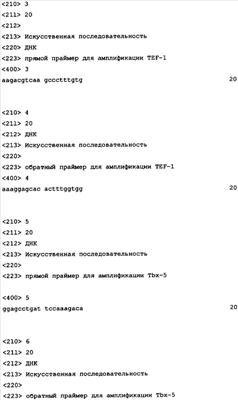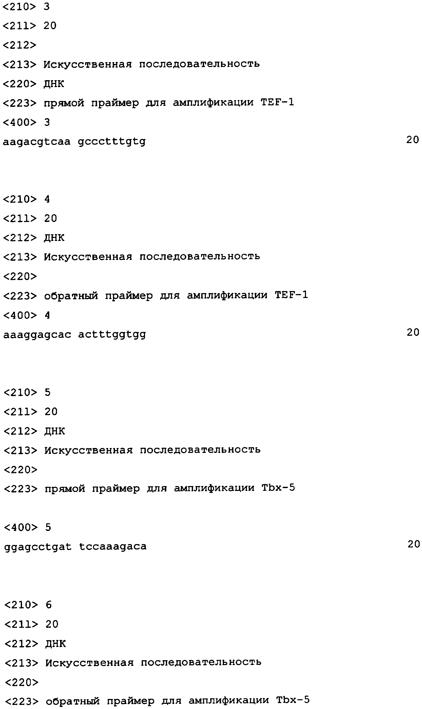 TEF-1 (обратный) 5′-AAAGGAGCAC ACTTTGGTGG-3′ (SEQ ID NO:4)