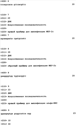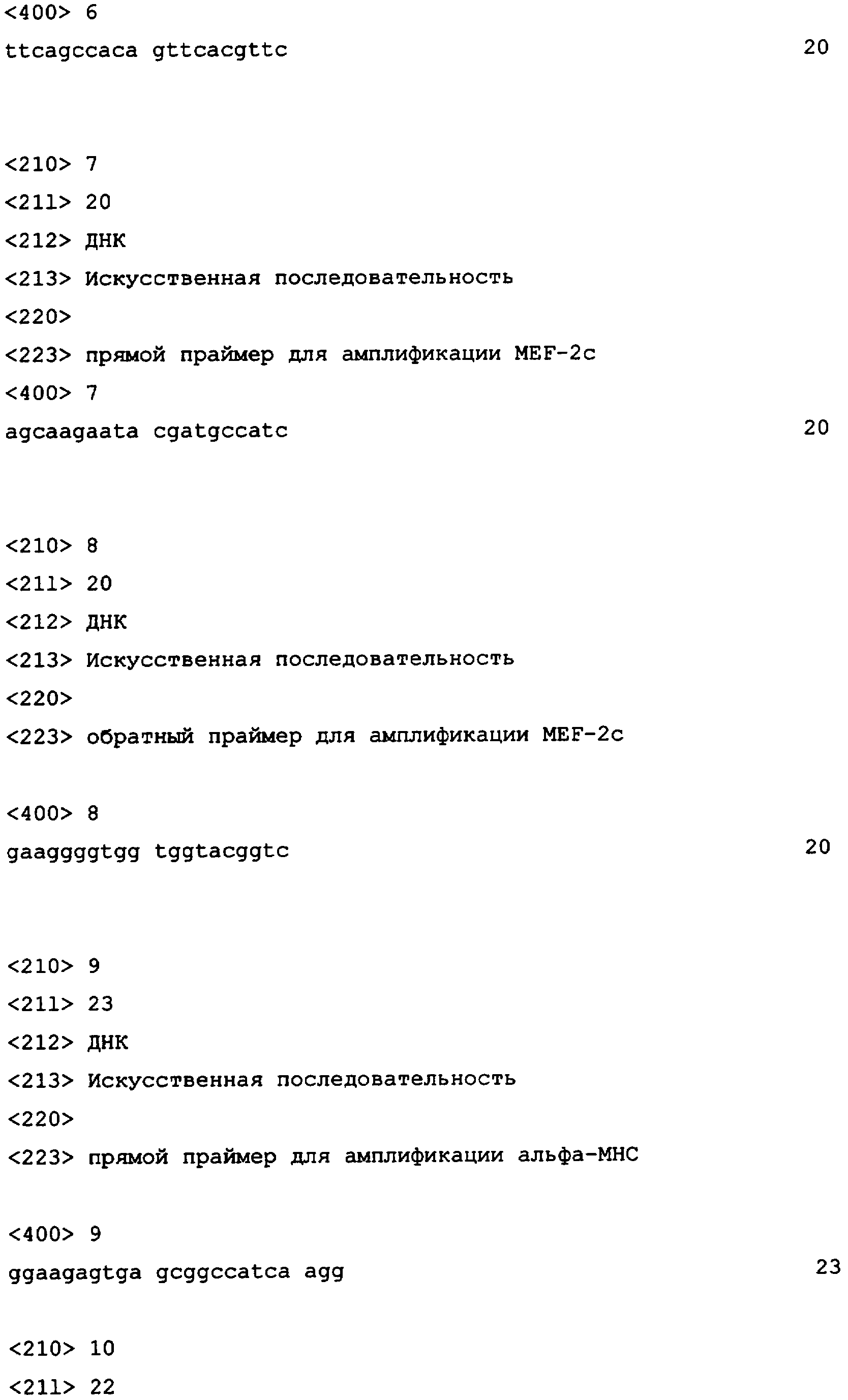 МЕF-2c (прямой) 5′-AGCAAGAATA CGATGCCATC-3′ (SEQ ID NO:7)