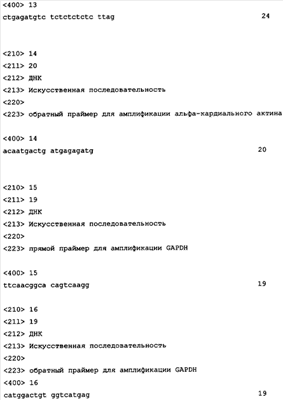 -кардиальный актин (прямой) 5′-CTGAGATGTC ТСТСТСТСТС TТАG-3′ (SEQ ID NO:13)