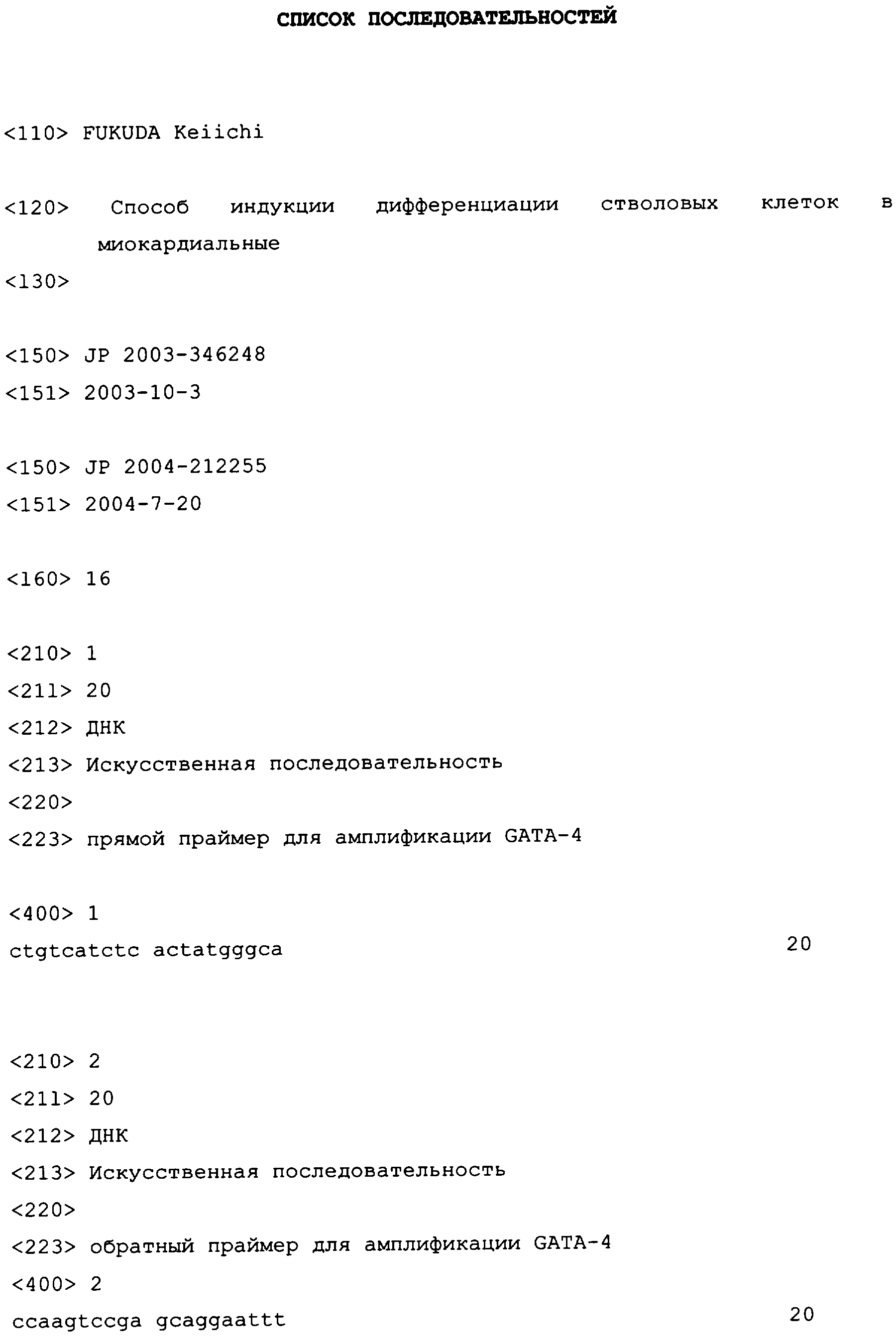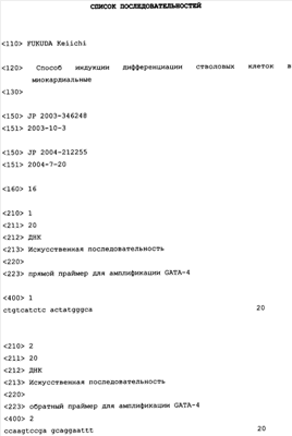 (11) Способ по приведенному выше п.10, где клетки млекопитающих, обладающие способностью к дифференциации в кардиомиоциты, представляют собой полипотентные стволовые клетки или клетки, полученные из них.