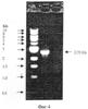 10. Тест рекомбинантного аденовируса на стабильность структуры. В результате нескольких репродукций получили геномную ДНК вируса. Фрагменты ДНК амплифицировали согласно ПЦР, при этом с обоих концов р53 в качестве праймеров использовали 5′ ЦЦАЦГАЦГГТГАЦАЦГЦТТЦ и 5′ ЦААГЦААГГГТТЦАААГАЦ. На фиг.3 приведены результаты электрофореза в агарозном геле. Плечи аденовируса с обоих сторон рекомбинанта аденовируса р53 были разработаны в виде праймеров: 5′ ТТТЦТЦАГГТГТТТТЦЦГ и 5’ЦАТ ЦГТАЦЦТЦАГЦАЦЦТТЦ. Результаты цепной реакции полимеразы приведены на фиг.4. Полученные выше данные указывают, что структура рекомбинанта аденовируса р53 после большого количества репродукций была стабильной.