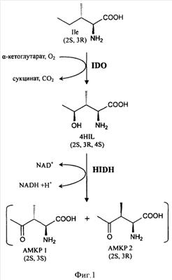 В настоящем изобретении термин “(2S,3R,4S)-4-гидрокси-L-изолейцин” или “(2S,3R,4S)-4HIL” относится к отдельному химическому соединению или смеси, содержащей (2S,3R,4S)-4-гидроксиизолейцин.