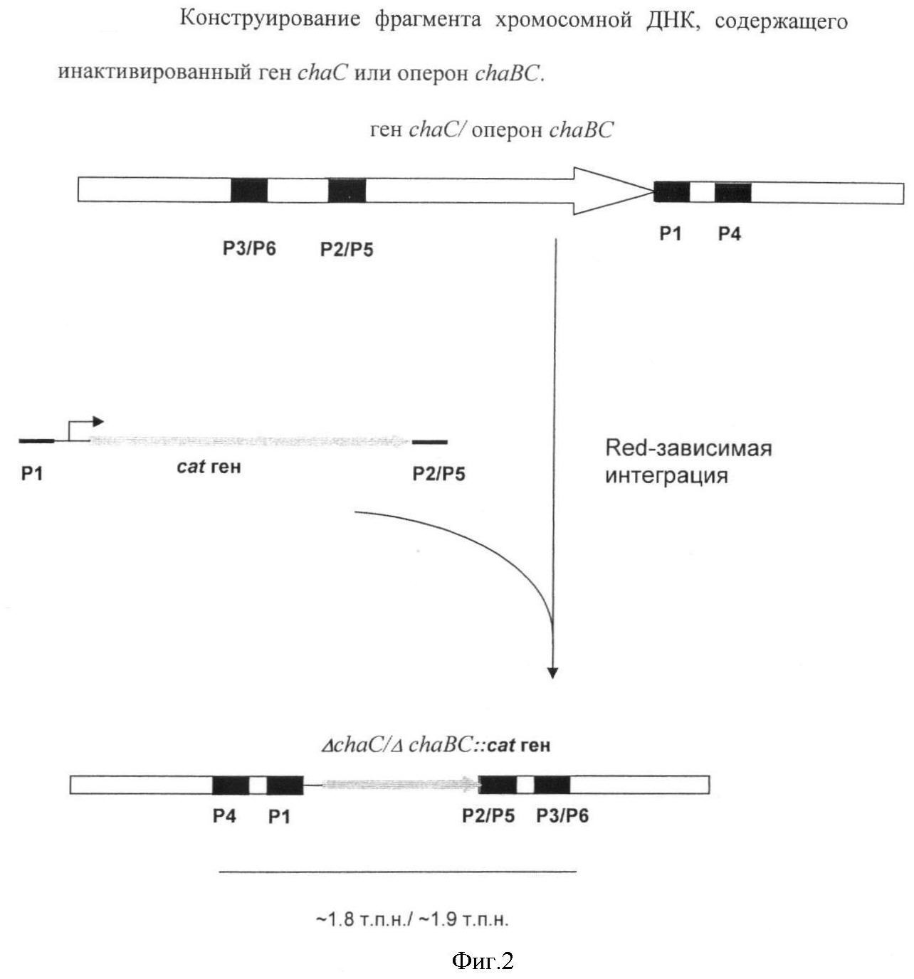 2. Бактерия по п.1, отличающаяся тем, что указанный ген chaC инактивирован за счет делеции гена chaC в хромосоме бактерии.