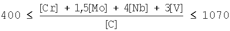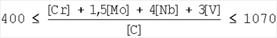 , ([C]-0,02)·8,3 [Nb]+[V], где [C], [N], [Cr], [Mo], [Nb], [V] – содержание в стали углерода, азота, хрома, молибдена, ниобия и ванадия.