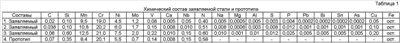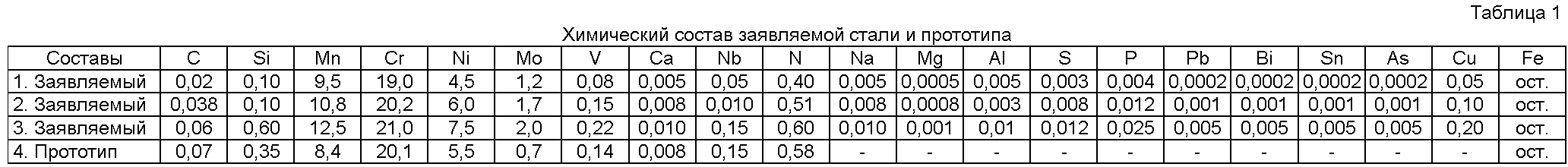 Была выплавлена сталь заявляемого состава. Химический состав заявляемой стали и стали-прототипа представлен в таблице 1.