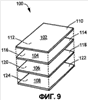 Фиг.9 – вид примерной впитывающей структуры, которая содержит гидравлически перепутанный нетканый составной материал.