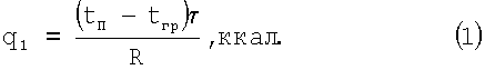 За время (час) в слой грунта толщиной (м) поступает из полости количество тепла q1 (ккал), которое может быть выражено следующей зависимостью: