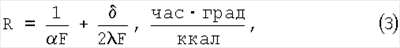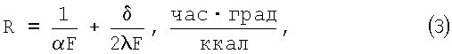 R – термическое сопротивление прохождению тепла из полости скважины в грунт (или обратно), час·град/ккал;