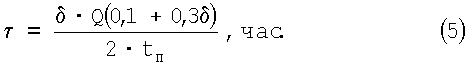 , ч, где – толщина прослойки грунта со стороны полости скважины, равная разности радиусов столба и скважины, м; Q – скрытые теплоты для перевода грунта из одного фазового состояния в другое, ккал/м3; t – температура воздуха в полости скважины в процессе ее прогрева, град.