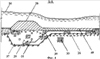Выработка 12 изменяет напряженное состояние горных пород главным образом за счет того, что верхний слой горных пород, вскрытый выработкой 12 и образующий собой дно 13 канала, впервые подвергается годовым температурным колебаниям, которые многократно превышают его прежние бытовые температурные колебания за всю его историю. В результате этого в холодный период года под воздействием температурных напряжений в породах раскрываются существующие трещины и образуются новые трещины. Обычно образование таких трещин происходит в пределах мерзлой корки 33, что в холодный период года перед началом эксплуатации канала не является опасным, поскольку водонепроницаемость мерзлой корки быстро восстанавливается.