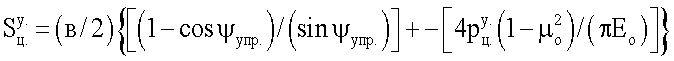 – среднее давление под обрезанными торцами цилиндра, при осадке грунта Sц.=2в·рц. у.(1-µo 2)/( Eo) под цилиндром, где Ео – модуль объемной деформации, а цилиндрическую опорную поверхность погружают в предварительно подготовленную цилиндрическую выемку в грунте с радиусом Rц. на глубину S=(в/2)[(1-cos упр.)/sin упр.], причем цилиндрическую опорную поверхность фундамента предохраняют от продольного смещения и бокового опрокидывания под действием внешней динамической нагрузки путем увеличения продольной горизонтальной опорной части прямоугольного или призматического балочного фундамента, выступающей за края цилиндрической опорной поверхности, либо путем анкеровки фундамента к грунтовому основанию сваями.