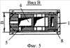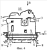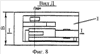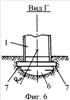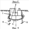 – среднее давление под обрезанными торцами цилиндра 6 (фиг.13), при осадке грунта Sц.=2в·рц. у.(1-µо 2)/( Ео) под цилиндром, где Ео – модуль объемной деформации, а цилиндрическую опорную поверхность 6 погружают в предварительно подготовленную цилиндрическую выемку в грунте с радиусом Rц. на глубину S=(в/2)[(1-cos упр.)/sin упр.], причем цилиндрическую опорную поверхность 6 фундамента предохраняют от продольного смещения и бокового опрокидывания под действием внешней динамической нагрузки путем увеличения горизонтальной опорной части 7 (фиг.6) прямоугольного или призматического балочного фундамента, выступающей за края цилиндрической опорной поверхности 6, либо путем анкеровки фундамента к грунтовому основанию сваями 8.