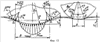 Пример 1 реализации способа и устройства. Устройство фундамента под машины выполнено в виде заглубленной в грунтовое основание на высоты, но не менее 1 м массивной армированной железобетонной фундаментной плиты 1 прямоугольной (фиг.1, 2) или квадратной в плане формы при гидроизоляции ее от вредного воздействия агрессивных грунтовых вод и расположении центра тяжести машины 2 и центра тяжести площади подошвы фундамента на одной вертикали с площадью опорной поверхности F={Еупр./[ко·Cz·(1-µо 2)]}2, где Еупр. – модуль упругости грунта, ко – коэффициент формы фундамента в плане, µo – коэффициент Пуассона грунта, Cz – коэффициент упругого равномерного сжатия, с выемками 3, шахтами 4 и отверстиями 5 для размещения и крепления машины 2 и обеспечения удобств при ее обслуживании. При этом прямоугольный в плане фундамент выполнен с опорной фундаментной плитой 1 выпуклой сферической формы 6 (фиг.3, 6) с радиусом где d – диаметр отпечатка заглубленной сферы 6 (фиг.15) на поверхности углубленного грунта, – угол сектора упругого полуконтакта (фиг.15) сферы с грунтом, – давление структурной прочности грунта на растяжение, – угол внутреннего трения и с – удельное сцепление грунта, – критическое давление под центром сферы, при среднем допускаемом давлении (фиг.14) на упругое грунтовое основание