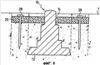 На фиг.4 представлен другой вариант осуществления устройства по изобретению, аналогичный варианту осуществления по фиг.3, но отличающийся с точки зрения материала, из которого изготовлена плита 20. В данном варианте плиту 20 изготавливают из обработанного гравия, т.е. из гравия с добавлением вяжущих веществ, а предпочтительно из гравия с добавлением гидравлического вяжущего вещества. Определение последнего типа обработанного гравия с примерами приведено во французском стандарте NF P98-116 от февраля 2000 г. Гравий с добавками вяжущего вещества обычно изготавливают вне площадки, в смесительном цехе, но иногда могут производить и прямо на площадке при помощи передвижного строительного смесителя, например фрезы для размельчения грунта и его перемешивания с вяжущим веществом или ковшового грохота. Обработанный гравий представляет собой сравнительно дешевый материал, обладающий большой удельной массой и высокими механическими характеристиками, в частности хорошей устойчивостью к деформации сдвига. Таким образом, толщина плиты может быть достаточно ограниченной, и, как показано в представленном примере, грунт, извлеченный в процессе выкапывания, может быть вывезен или использован для покрытия плиты, причем насыпь 26, образованная над массивным блоком, преимущественно имеет сравнительно небольшую высоту (предпочтительно менее 50 см), чтобы не создавать нежелательных препятствий.