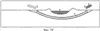 Фиг.3 – принципиальная схема способа по данному изобретению, в котором линия бурения проходит под береговой линией от начальной траншеи к целевой траншее и идет к заданной точке на дне водоема, на которой показаны: