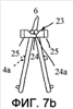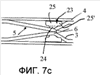 В варианте выполнения согласно фиг.7а-7с закрепляющим элементом 23, например согласно фиг.1, является фасонная деталь, которая может передавать усилия на змеевидно изогнутые элементы 5, например, только посредством взаимного зацепления, однако для надежности она может быть также жестко приварена. Фасонная деталь имеет две находящихся на расстоянии друг от друга боковых части 25, между которыми под углублением 24а проходит тонкая центральная часть 24. Оба змеевидно изогнутых элемента 5 наклонены вверху друг к другу, так что изгибы 6 прилегают друг к другу или могут быть приварены друг к другу. Закрепляющий элемент 23 заведен в изгибы 6 снизу, так что углубление 24а расположено в их криволинейных участках. Боковые части 25 размещены рядом с изгибами 6 и проходят так, что их верхние стороны по высоте достигают верхней стороны этих изгибов. Концы 25′ боковых частей 25 могут, например, быть защелкнуты на раскосах 3.