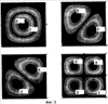 На фиг.3 приведены варианты размещения источников динамической нагрузки и акселерометров на поверхности плиты для четырех мод.