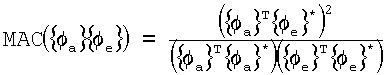 где и – формы деформации, полученные из идентификации расчетной модели конструкции и измеренные в процессе динамического нагружения конструкции соответственно. MAC значением является квадрат косинуса угла между двумя собственными векторами двух форм деформации. Если это значение равно единице, то имеет место совпадение собственных векторов и форм деформации. В случае равенства значения MAC=0 эти собственные вектора перпендикулярны друг другу и рассматриваемые формы деформации отличаются друг от друга. Этот критерий используется для обнаружения возникновения дефектов в конструкциях. При MAC=1 конструкция находится в неповрежденном состоянии, при 0 MAC <1 конструкция находится в поврежденном состоянии, чем больше повреждений, тем ближе MAC к нулевому значению.