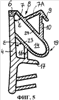 Здесь, как и в формах осуществления по фиг.2 и фиг.3, профильное сечение профильной камеры 14 образовано круглой стенкой 13, при этом, однако, по сравнению с формой осуществления по фиг.3 опорная перемычка 16 не входит в отходящий от профильной спинки 4 перекрывающий язычок 17, а перекрывающий язычок в месте примерно под местом входа выгнутости 19 в опорную перемычку 16 исходит из нее и проходит по направлению от профильной спинки 4 и опорной перемычки 16.