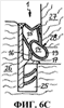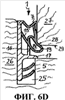 фиг.6А-6D – изображение уплотнения фальца створки согласно изобретению по фиг.1, встроенного в фальц створки, для представления разных стадий при вхождении в уплотнительный контакт; и
