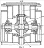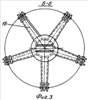 Виброблок 2 устройства имеет эксцентрики 6, закрепленные на эксцентриковых валах 7. Эксцентриковые валы 7 соединены зубчатыми коническими колесами 8 с валом 9 привода 1 и входным валом 10 редуктора 3 (см. фиг.4). Виброблок 2 при бурении создает направленную вертикальную и крутильную в горизонтальной плоскости вибрацию. Редуктор 3 имеет выходные валы: центральный 11 и дополнительные 12, которые соединены соответственно с центральным шнеком 13 и дополнительными шнеками 14 и с забурниками 15.