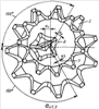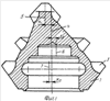 Одновременно с этим первые три венца 2 шарошки, начиная с вершинного венца, в плоскости, перпендикулярной к продольной оси 4 шарошки, смещены один относительно другого на угол 120± , где =1-5°, причем величина выбирается в зависимости от типоразмера долота. Последующие венцы 2 выполняют соосно с продольной осью 4 шарошки, но также с угловым смещением
