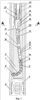 На концах телескопического вала 10 закреплены карданные полумуфты 13 и 14. Между верхней полумуфтой 13 и нижней частью телескопического вала 10 враспор установлена предварительно сжатая заданным усилием пружина 15. Штифт 11 в пазах 12 занимает крайнее верхнее положение. Забойный двигатель 16 привода вращения режущего инструмента 6 установлен в посадочном месте 17 корпуса 2, а его скошенные радиальные выступы 18 расположены в радиальных пазах 19 корпуса 2, при этом приводной вал 20 забойного двигателя 16 жестко связан с карданной передачей 7. В верхней части забойного двигателя 16 ввернут поворотный шарнир 21, имеющий герметичный осевой канал 22. В свою очередь поворотный шарнир 21 связан с трубой 23 колтюбинга (не показан), проходящей внутри НКТ 1.