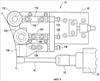 Первый исполнительный механизм 16, второй исполнительный механизм 20 и третий исполнительный механизм 34 могут иметь клапан управления с тремя режимами работы – поступательным режимом, реверсивным режимом и нейтральным режимом. Нейтральный режим управляющего клапана позволяет оператору вручную задавать положение соответственно узла 12 для придания направления уплотнению и первого исполнительного механизма 16. В варианте осуществления конструкции, взятом в качестве примера, первый исполнительный механизм 16, второй исполнительный механизм 20 и третий исполнительный механизм 34 могут работать в нейтральном режиме, который может быть активирован посредством кнопки аварийной остановки, расположенной на автоматизированном уплотняющем узле 10. В варианте осуществления конструкции, взятом в качестве примера, как второй исполнительный механизм 20, так и третий исполнительный механизм 34 могут быть пневматическими механизмами, при этом в случае нейтрального режима будет осуществлен сброс давления во втором исполнительном механизме 20 и в третьем исполнительном механизме 34 до атмосферного давления окружающей среды.